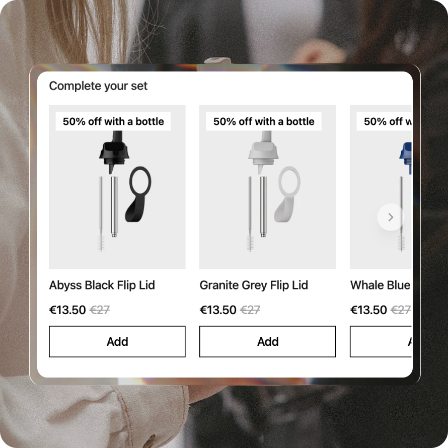 Complete-the-set and BOGO offers that add the perfect add-on to every order. Feels like a favor, not an upsell.