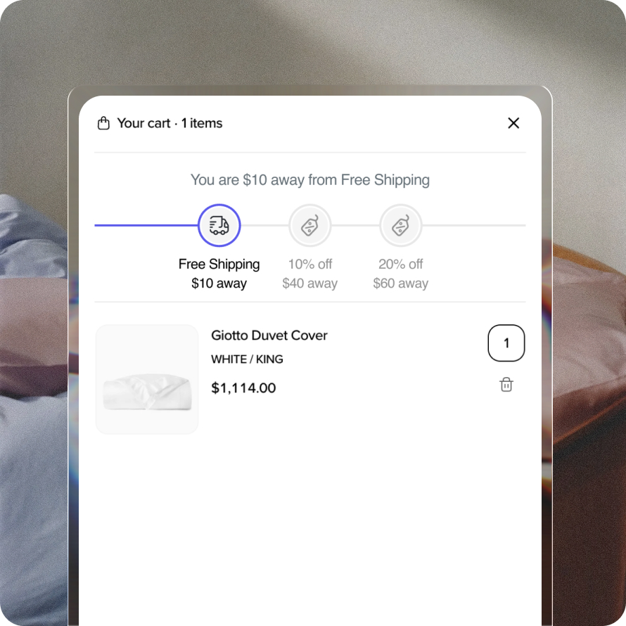 Progress bars that unlock rewards (free shipping, gifts, discounts) so customers naturally push to the next tier. Clear, motivating, on-brand.